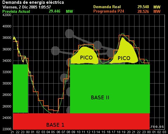 Energía eléctrica consumida el día 1 de Diciembre de 2005
